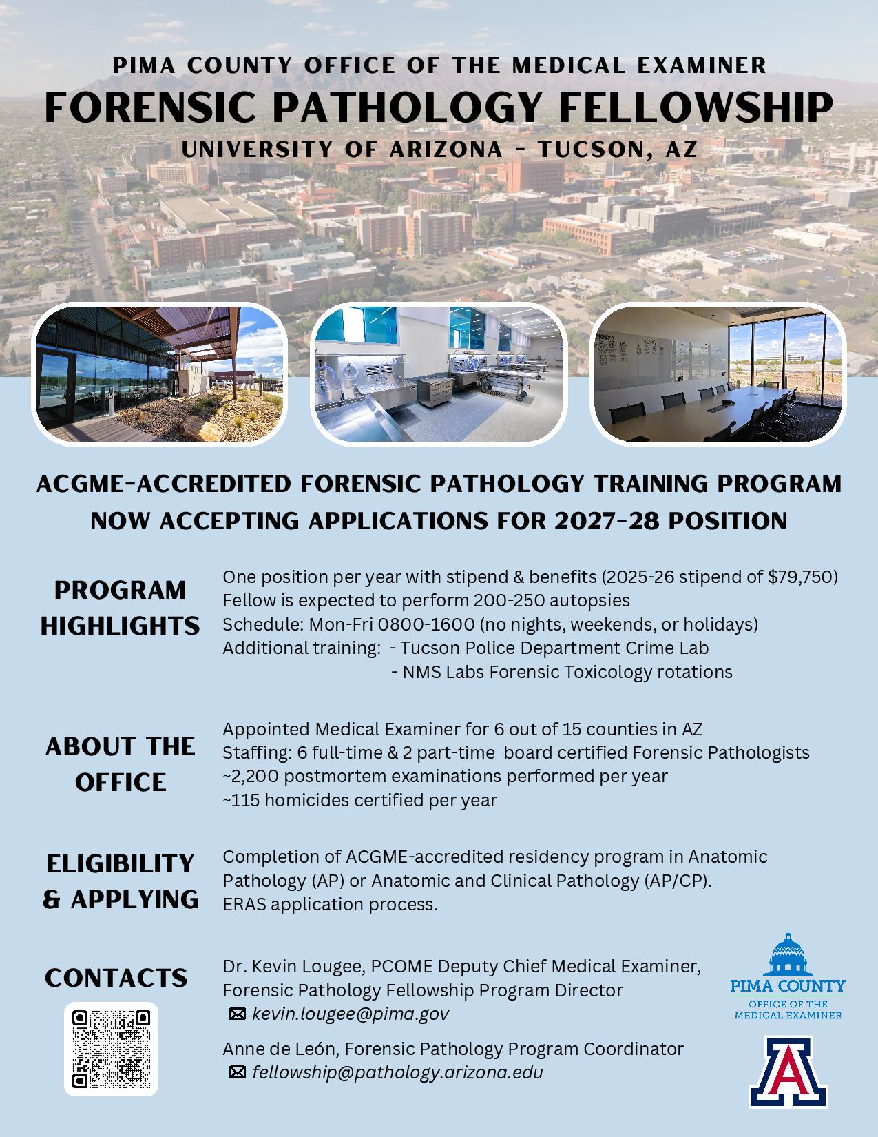Pima County Office of the Medical Examiner University of Arizona - Tucson, AZ Fellowship Program |