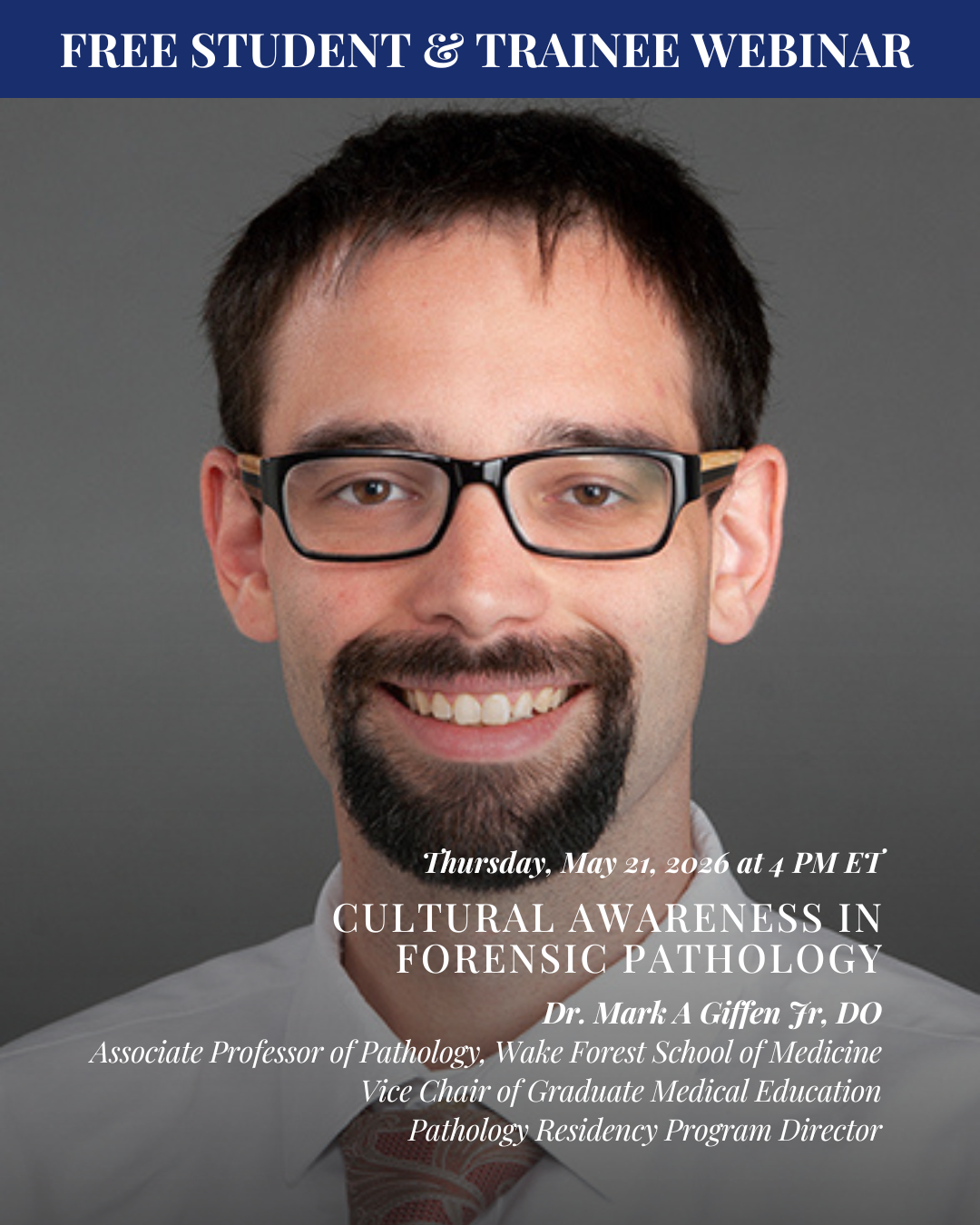 "Cultural Awareness in Forensic Pathology" Link to register for event: https://us06web.zoom.us/webinar/register/WN_XjZqY6D5THaodwrYvkmt8A