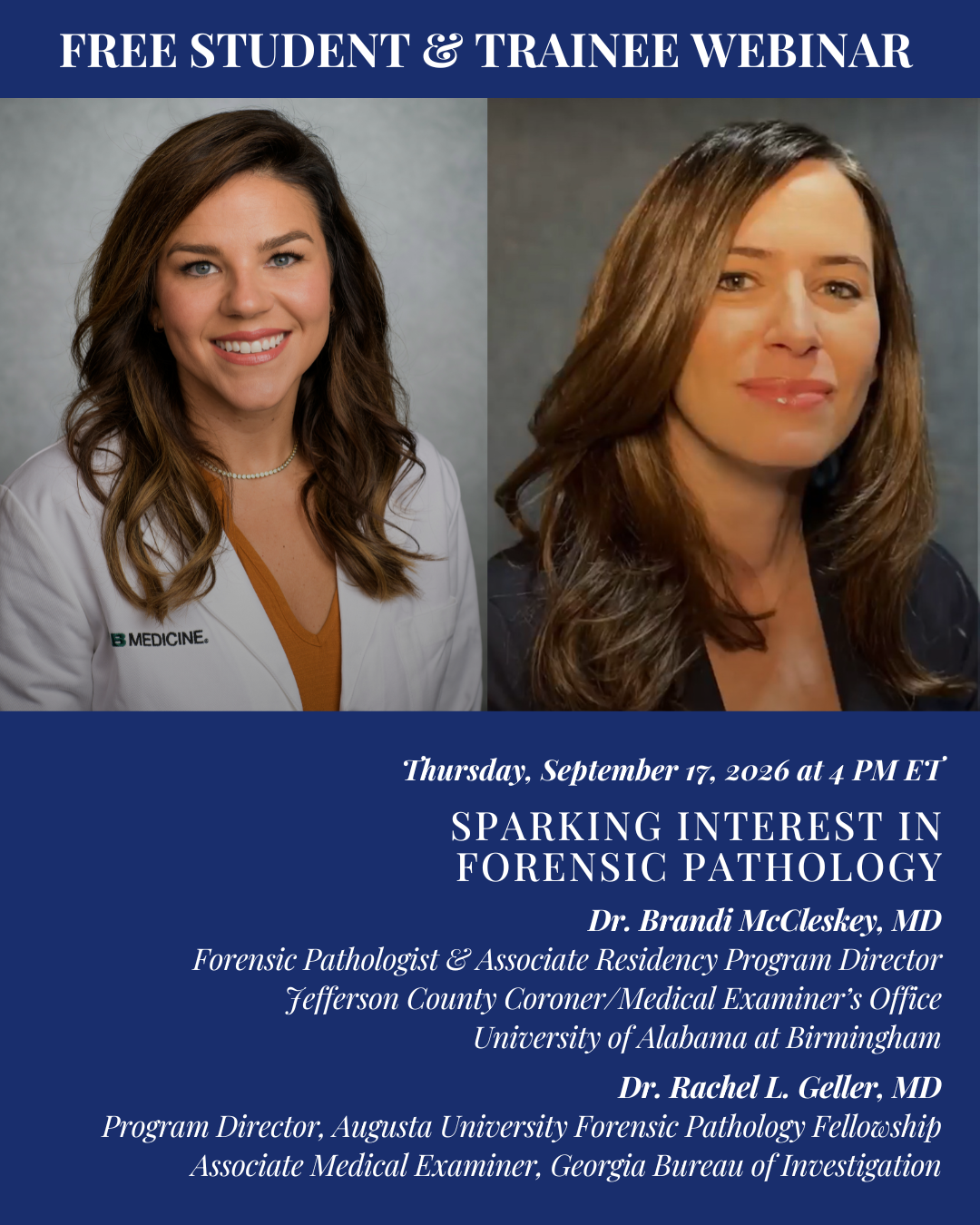 "Sparking Interest in Forensic Pathology" Link to register for event: https://us06web.zoom.us/webinar/register/WN_yhWtazNaS2aqvB-o5zGleg